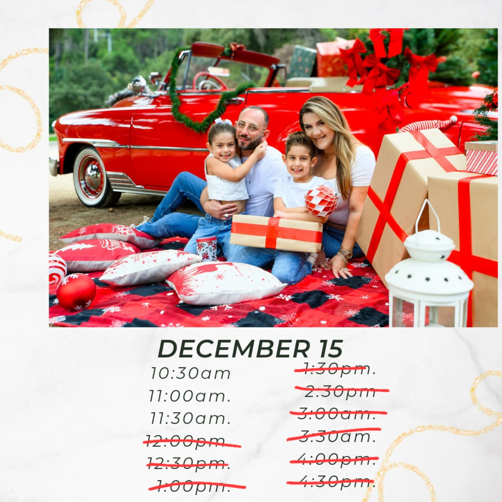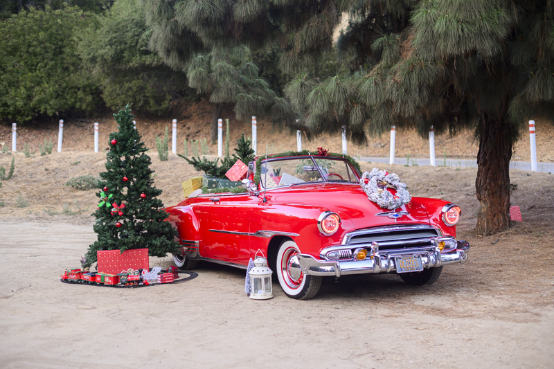 Inviting you and your family to experience your Christmas mini session with a stunning red Chevrolet as a backround.